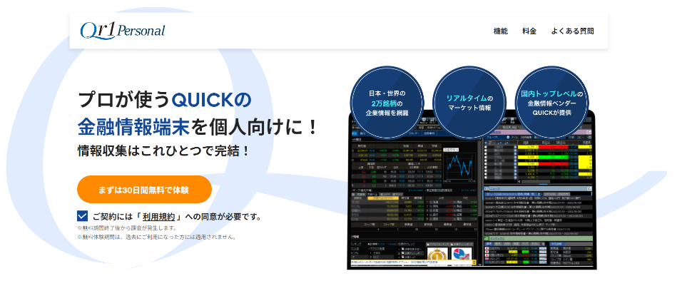 プロ向け金融情報サービス「Qr1」を個人投資家向けに提供