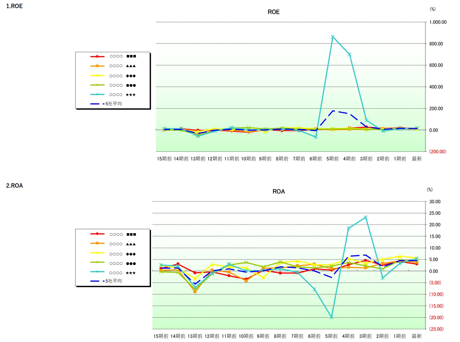 分析 企業価値を分析する「ROE分析」「ROIC分析」、複数の企業を横並びで比較できるシートなど、企業分析に強いテンプレートも充実