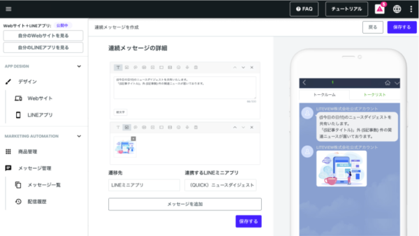 リッチメニューやミニアプリ(WebView画面)、オリジナルメッセージを作成できます。