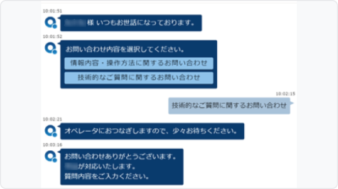 オペレーターに“すぐ”質問できる「お問い合わせ」(※)